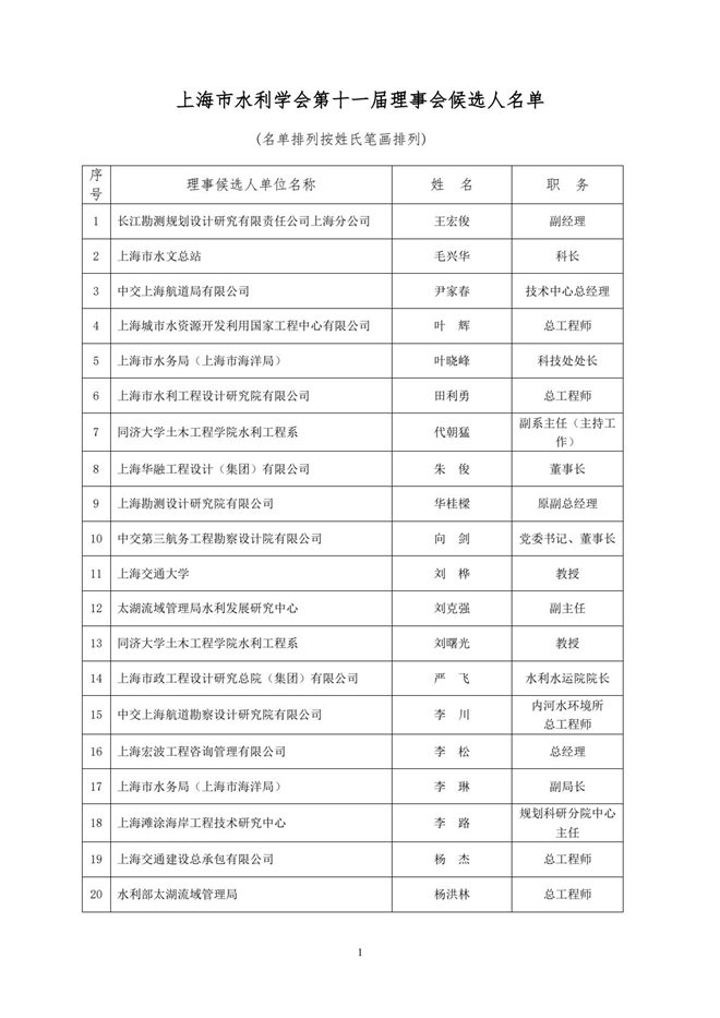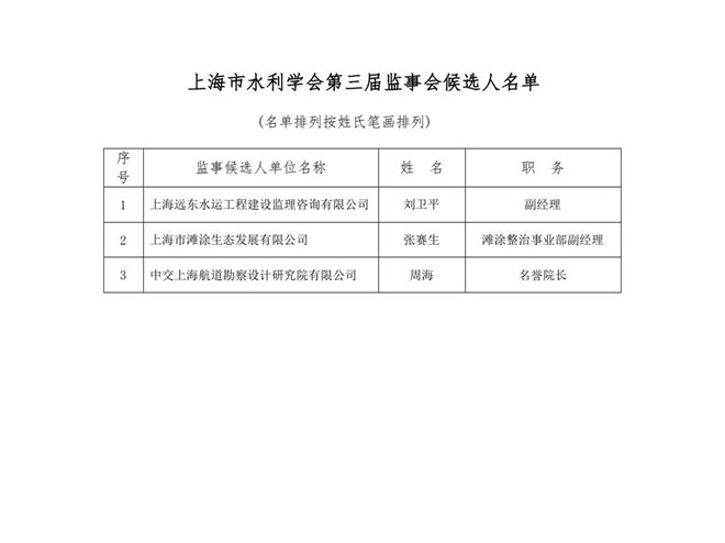 附件:上海市水利学会第十一届理事会、第三届监事会候选人名单